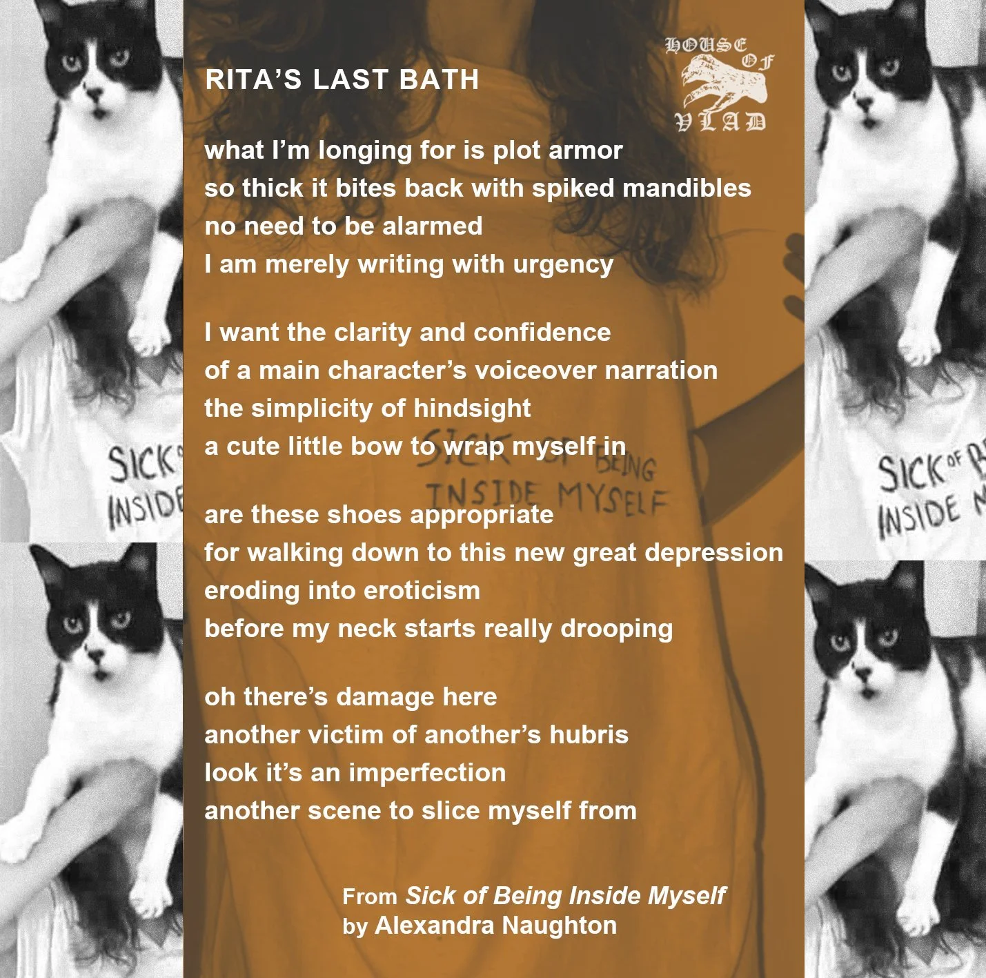 Alexandra Naughton’s latest poetry collection SICK OF BEING INSIDE MYSELF is available now from House of Vlad Press!